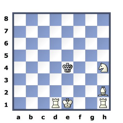You will have noticed that in the previous example White is up two Rooks, a Bishop and a Knight. So what? It is not a game of chess, but a problem with a specific task, and whether one side could win easily in a real game is of no importance. White to play and mate in two moves means exactly what it says, and that is the task: mating in three moves is simply not good enough - let alone reducing to a winning ending.