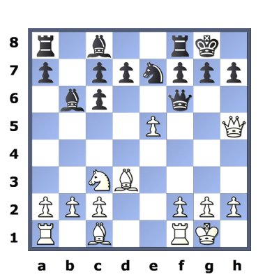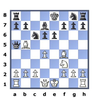 In this example White fell into one of the oldest traps in the book, and allowed Black's Queen to come to a5 and check his King. This move also carries with it an attack on White's undefended b5 Bishop, and that Bishop will be taken on Black's next move.