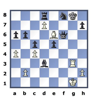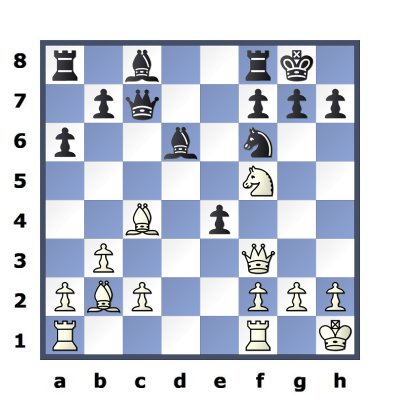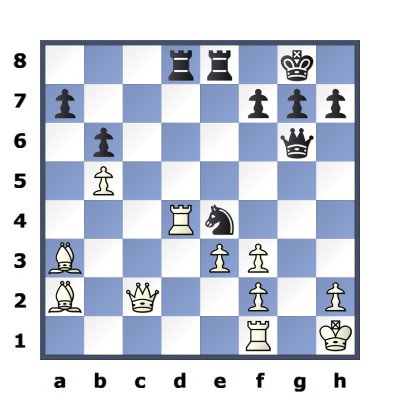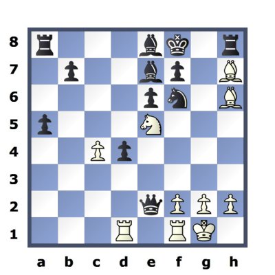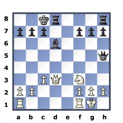 But Black's checking manoeuvre has uncovered an attack by his Rook on the Black Queen, which is captured the next move.