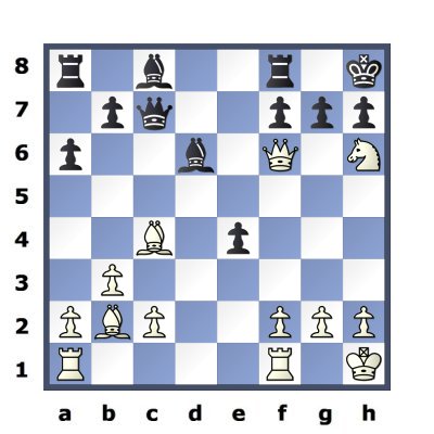 Black's Queen is undefended (a red light) and White came up with the brilliant move Bh7. Black's Queen is now under attack, but if she now saves herself either by retreating or by taking the White Queen, White has the stunning mate Bxh6 (diagram 2). Undefended Queens are a prime target.