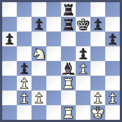 22.Qe3 Qxe3 23.Rxe3 Rf7 24.Rae1 Rfe7 25.f4 e4 26.dxe4 b4 27.Na4 Bxe4 28.Kg1 Kf7 29.Nc5