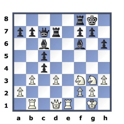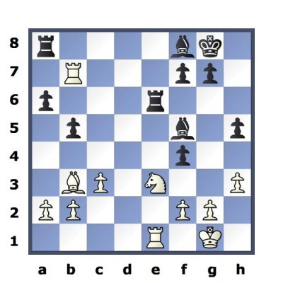 Note the Bishop lurking at a1, and pinning the Black Knight.