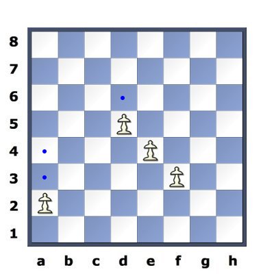 - The pawn on a2 is on its initial square, and so it can move to either a3 or a4
