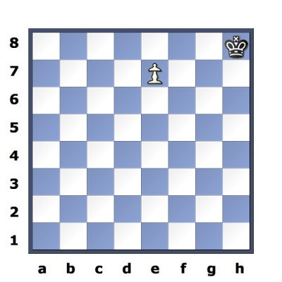 In this example the pawn can move to the e8 square, promoting itself to a Queen (and thus checking the enemy King for good measure).